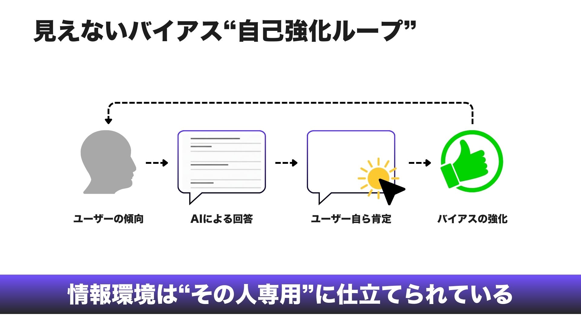ユーザーがAIの結果を強く信頼している一方で、AIが中立的な裁定者ではないことも認識する必要があります。AIは文脈によって判断が偏る存在です。
