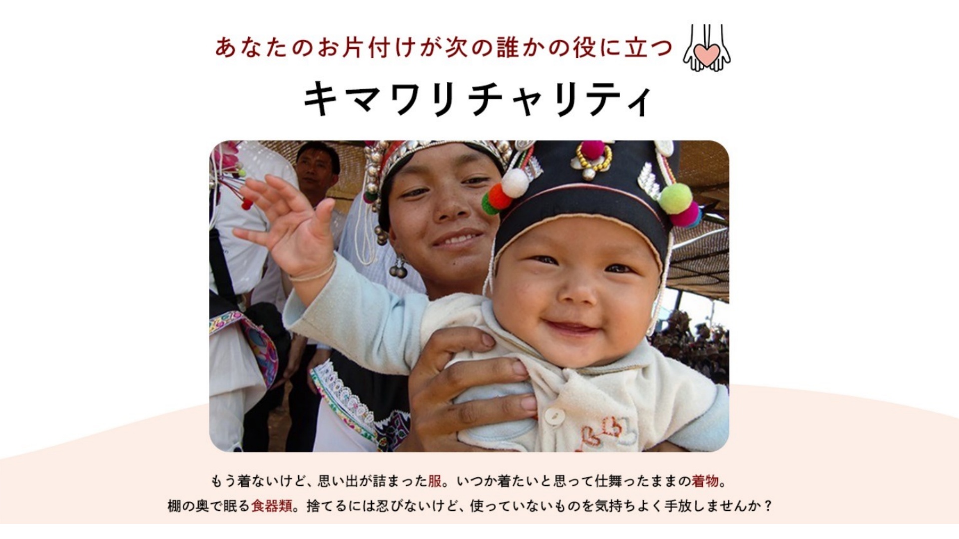 「古着deワクチン」は衣類・バッグ・靴などが対象。売上の一部からポリオワクチンをラオスへ寄付する。回収した衣類は主にカンボジアへ輸出され、再利用や販売を行う。
