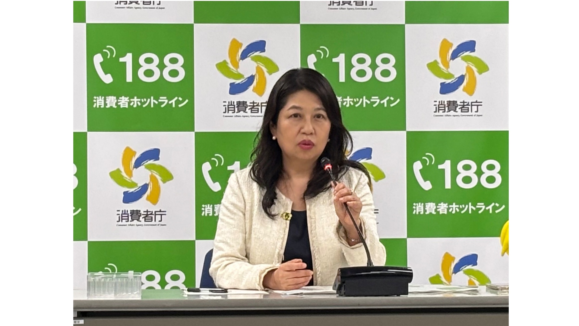 記者会見する消費者庁の堀井長官(3月26日午後)
