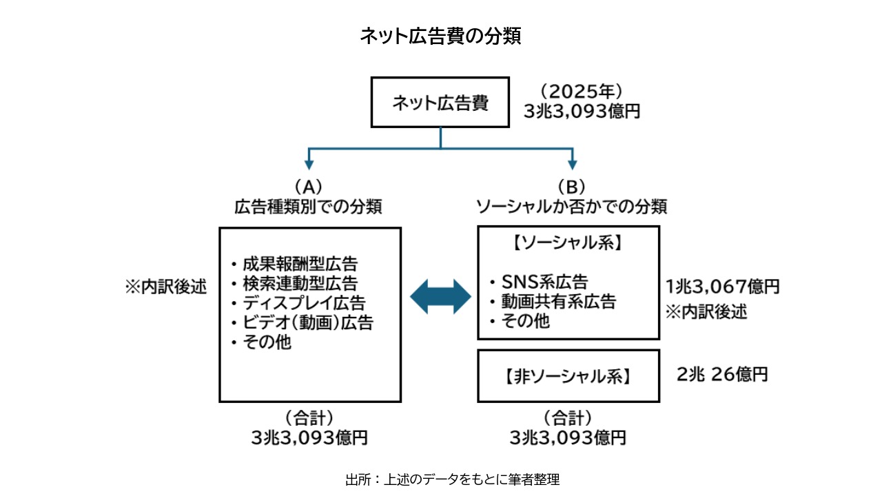 ネット広告は「広告種類別での分類」と「ソーシャルか否かでの分類」に大別