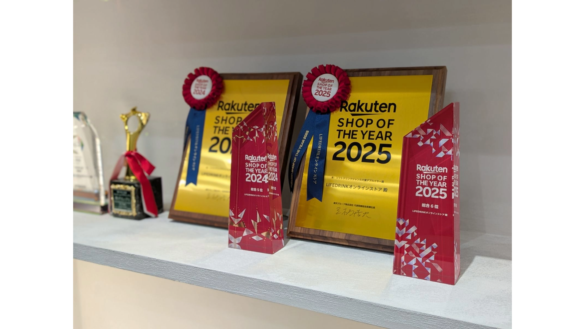 楽天ショップ・オブ・ザ・イヤー(以下SOY)は毎年、多くのEC事業者が目指す賞だ。その中で、2020年の出店初年度から6年連続受賞を続けているのがライフドリンク カンパニーの「LIFEDRINKオンラインストア 楽天市場店」である。2025年は水・ソフトドリンクジャンル大賞の3年連続受賞も達成した。