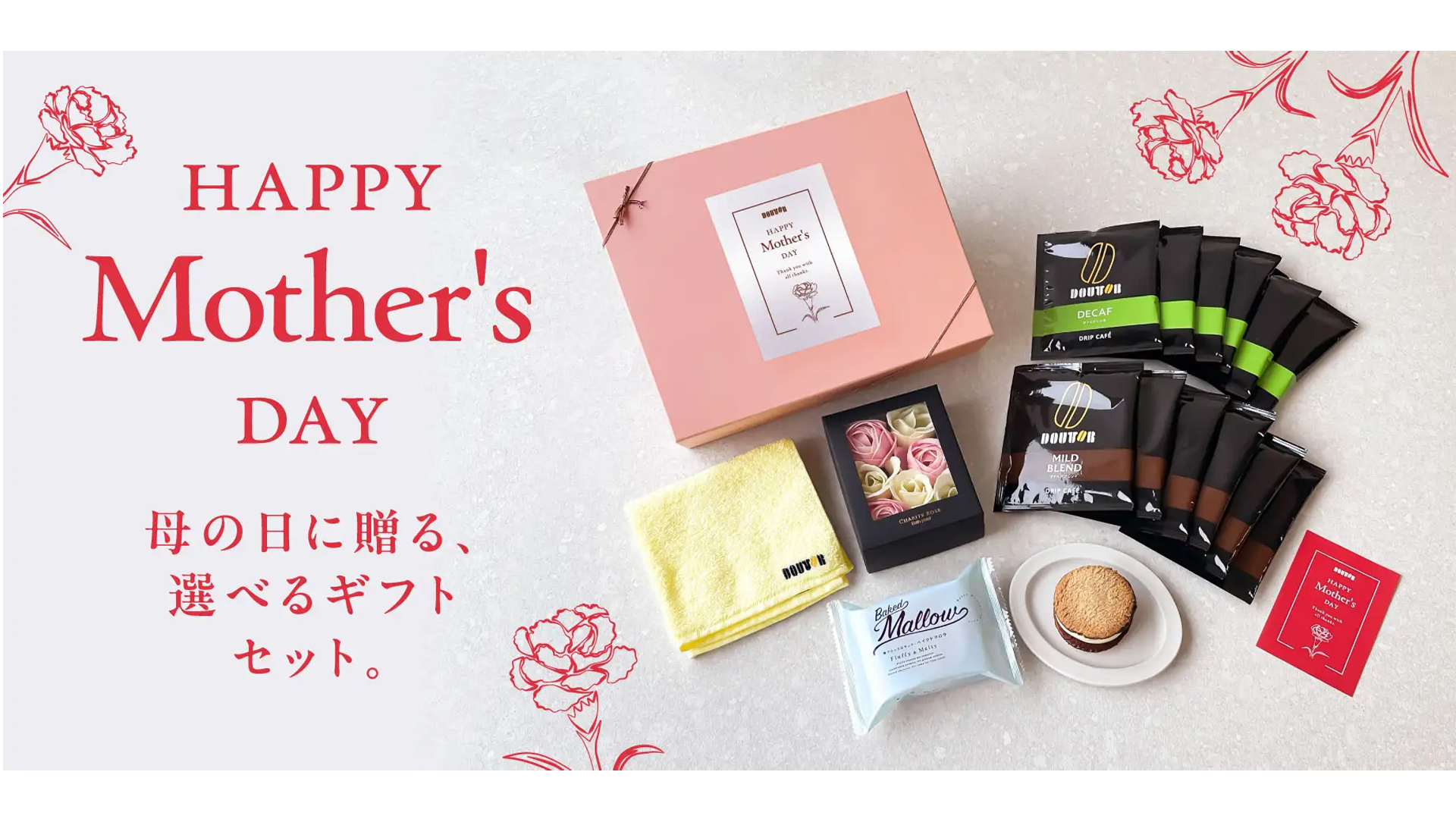 ドトールコーヒーは4月10日、公式通販サイト「ドトールオンラインショップ」で、「選べる母の日ギフト」の予約を開始した。予約期間は今月30日まで。配達は5月8日~10日を予定している。