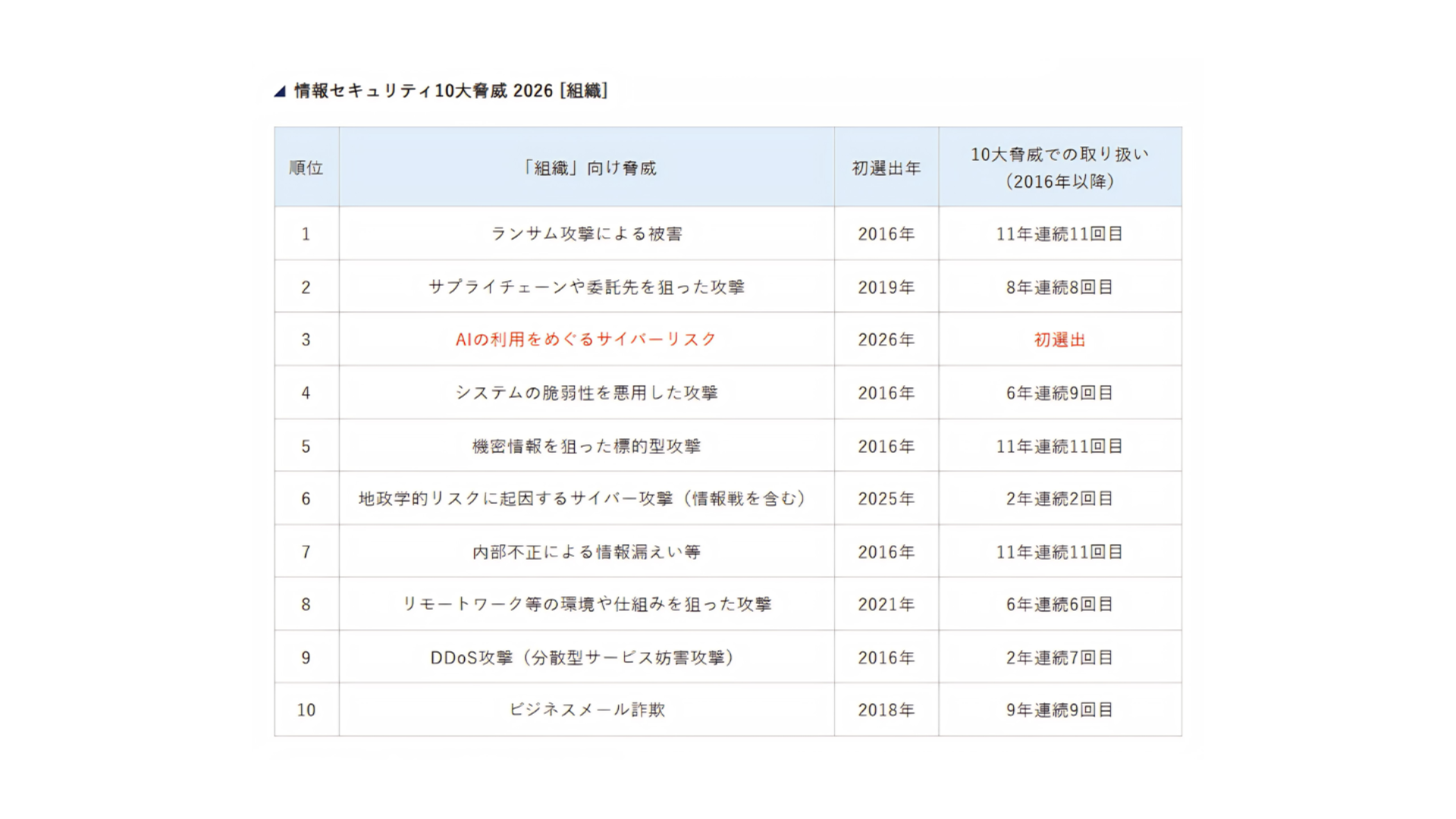 (出典:情報セキュリティ10大脅威 2026|IPA)