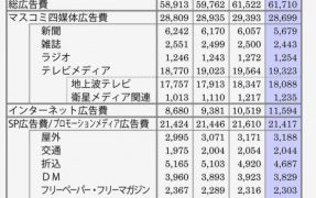 ...響し微増となった。 媒体別にみると、「新聞広告費」(前年比6.2%減)、「雑誌広告費」(同2.3%減)、「ラジオ広告費」(同1.4%減)、「テレビメディア広告費」(同1.2%減)を合計し...