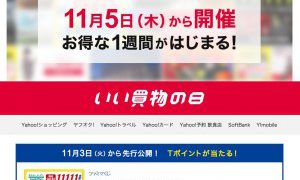 ヤフー(株)、(株)ファミリーマート、ソフトバンク(株)、(株)TSUTAYA、(株)Tポイント・ジャパンの5社は2日、11月11日を「いい(11)買物の日」と定め、「お買物の祭典」を開催すると発表した。...