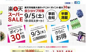 最大ポイント30倍!「楽天スーパーSALE」が5日開始