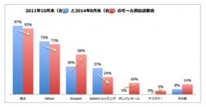 ECショップへの出店、アマゾンは急増・楽天とヤフーは微減