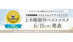 (株)アイスタイルは4日、6月18日に開催する「@cosmeベストコスメアワード・2019上半期新作ベストコスメ」「上半期トレンドキーワード」の発表に先立ち、ティザーサイトをオープンした。上半期のベストコ...