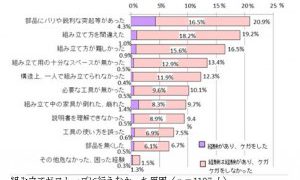 ...上の男女1107人を対象としたインターネットによるアンケート調査。調査期間は1月。都内の消費生活センターに組み立て式家具に関する相談が63件あり、都が危害状況を調査した。 組み立て式家具を組み立てに...