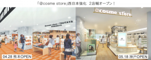 (株)アイスタイルの連結子会社(株)コスメネクストは11日、化粧品専門店「@cosme store」の新店舗を、4~5月にかけて西日本に3店舗オープンすると発表した。28日には「@cosme store ...