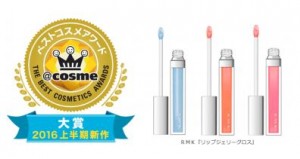 (株)アイスタイルがこのほど発表した「@cosmeベストコスメアワード2016上半期新作ベストコスメ」で、RMK『リップジェリーグロス』(RMK Division)が大賞を受賞した。 「上半期...