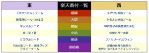 ...月1日~10月31日。同番付は、楽天市場の商品紹介動画配信サービス「楽天スーパーTV」でダイジェスト版を公開している。 ■「楽天2015年ヒット商品番付」