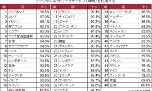 SNSの利用頻度、日本は49カ国中最下位。