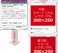 ...プの広告フォーマット。ニュースの記事ページに3つのバナー広告が連続して表示される。バナーは320×180ピクセルと大画面だが、ページをスクロールするごとに画面上にとどまりながら少しずつ広告がたたまれ...