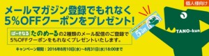 「ぱーそなるたのめーる」、メルマガ登録で5%オフキャンペーン