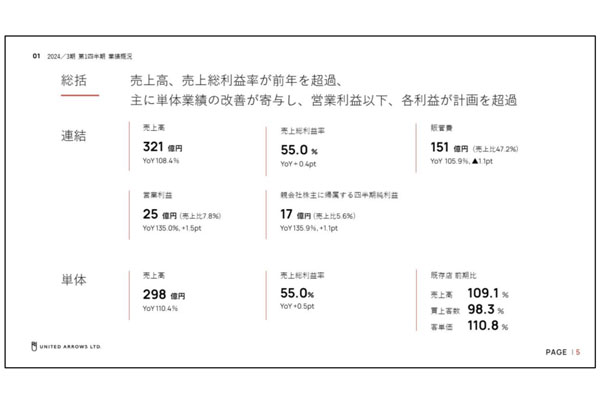 ユナイテッドアローズ1Qは増収増益、ネット通販売上が9... -