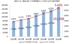EC市場規模、10%増の15兆1358億円…EC化率は5% -
