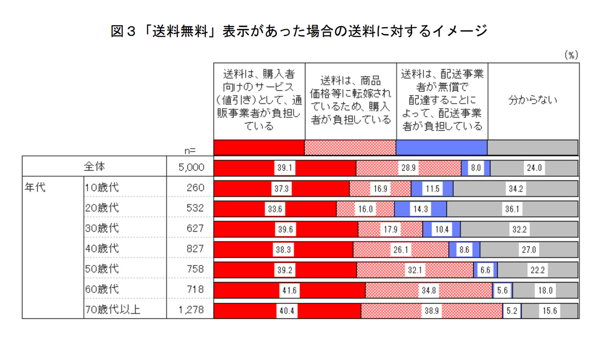 送料無料のイメージ、「サービスとして通販事業者が負担」が4割 -