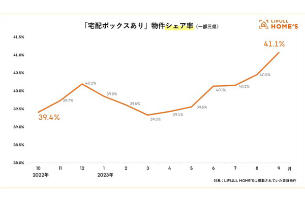 「宅配ボックスあり」物件のシェア、1都3県で41.1%... -