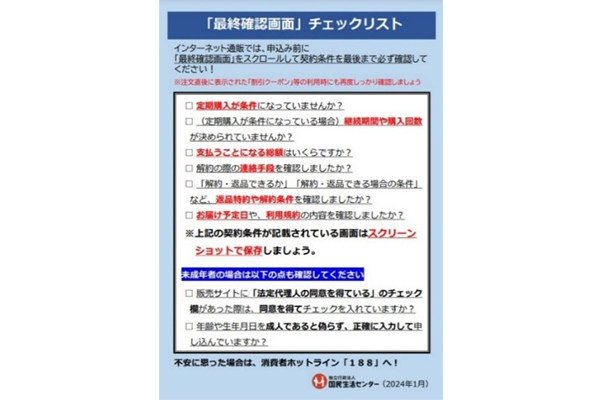 通販の定期購入トラブル防止で注意喚起…国民生活センター -