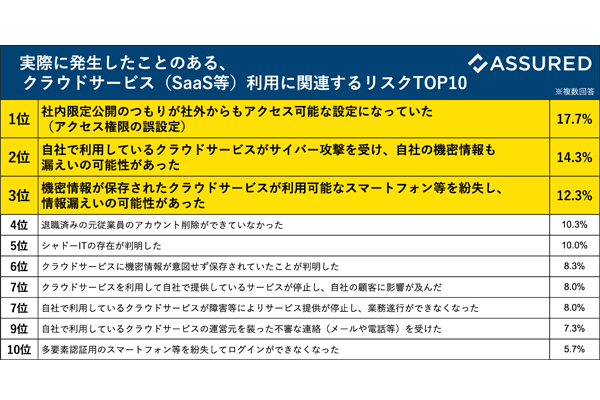 SaaS利用関連のリスクランク、1位は「アクセス権限の... -