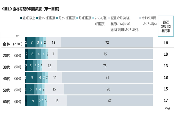 食材宅配、直近3カ月の利用率は16%…意向者は25% -