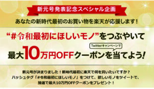令和最初にほしいモノをつぶやき10万円オフ!楽天が改元... -