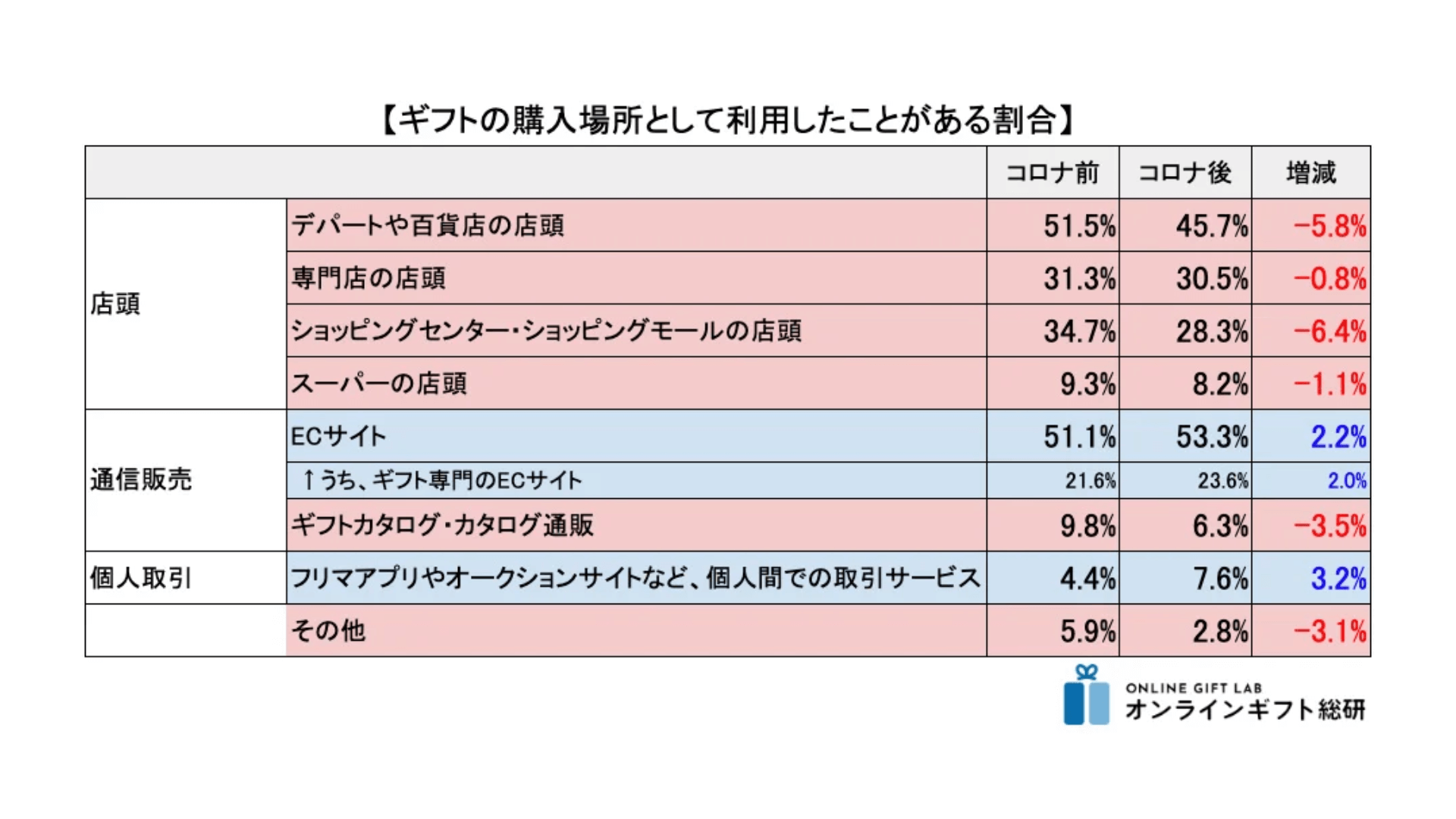 コロナ前後でギフトの購入場所に変化…リアル店舗が減少 ... -