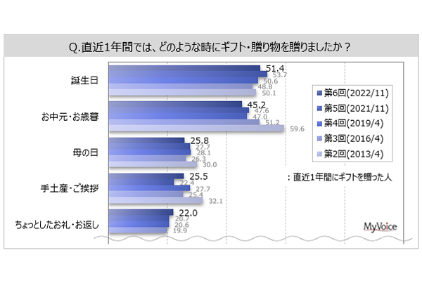「過去1年に贈り物」は6割強、ECからの購入が半数以上に -