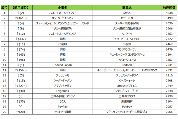 6月テレビCM放送回数、「Amazonプライムデー」が... -