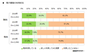 電子書籍利用率、無料コンテンツ22%・有料コンテンツ16% -