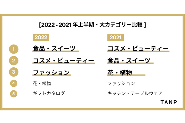 ギフトEC「TANP」22年上半期ランク、人気ギフト1... -