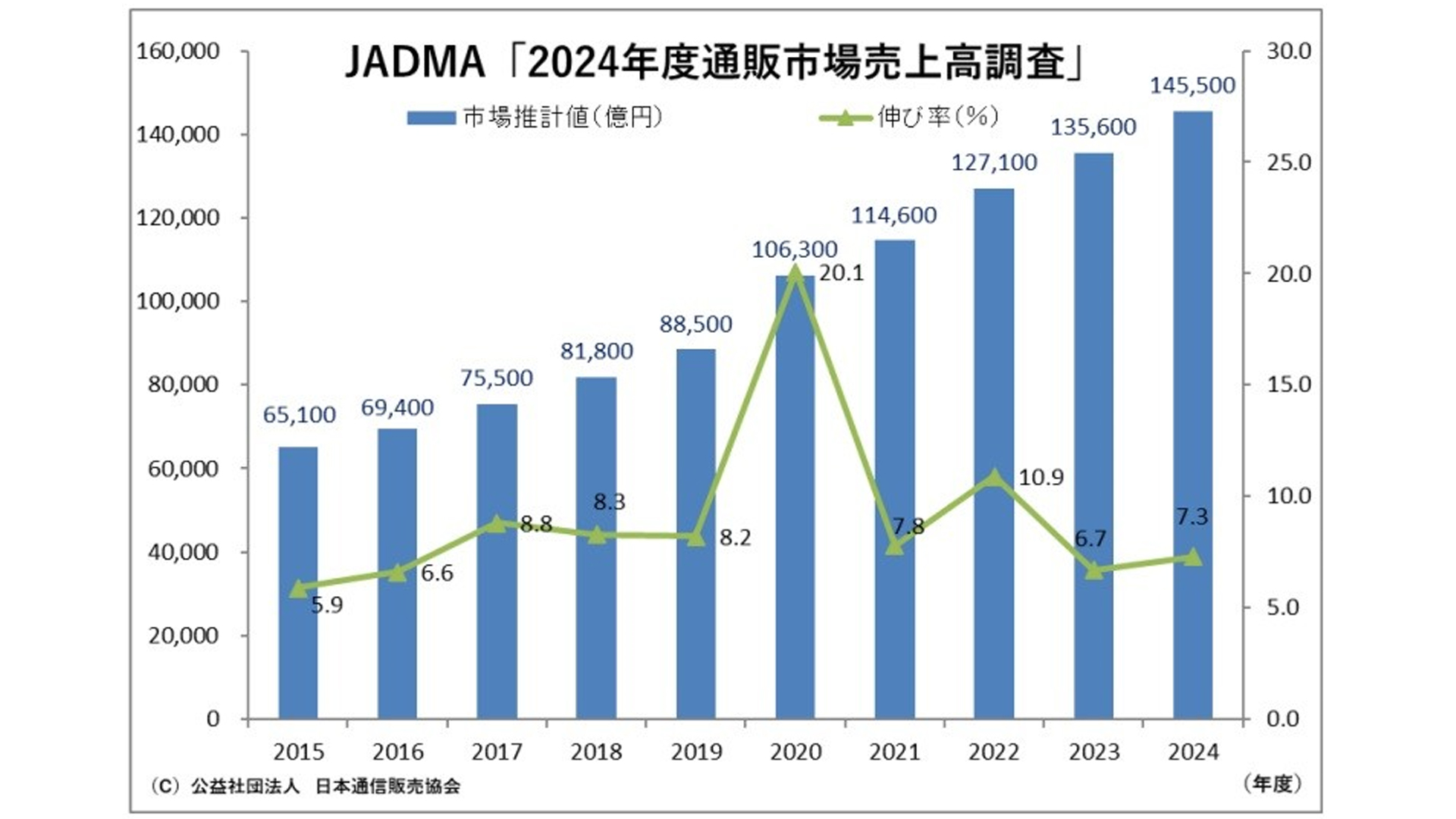 2024年度通販・EC市場規模 前年比7.3%増の14... -
