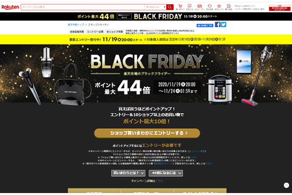 楽天市場「ブラックフライデー」セール、11月19日開幕... -