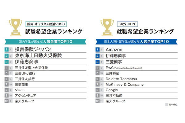 就職希望企業ランク、海外留学生でAmazonが初のトップに -
