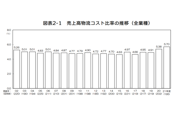 売上高の物流コスト比率、21年度は0.32ポイント増の... -