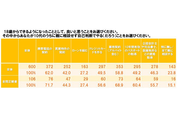 成年年齢引き下げでトライしたいこと、1位が「携帯電話の契約」 -