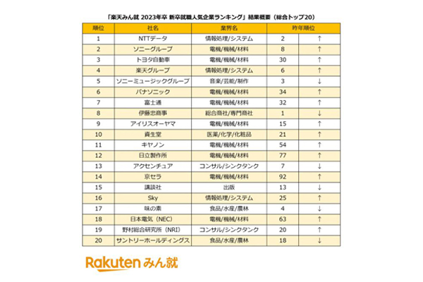 新卒就職人気企業ランキング、4位に楽天・9位にアイリス... -
