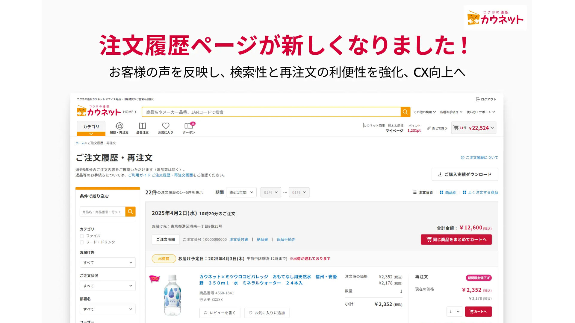 「カウネット」、注文履歴ページの機能を大幅強化 -