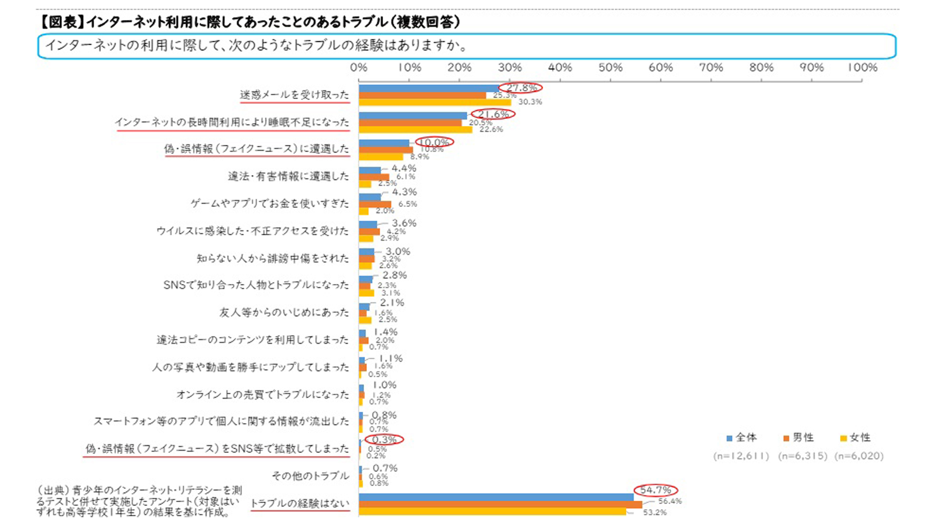 高校1年生の半数以上がネット上で「トラブルの経験はない... -