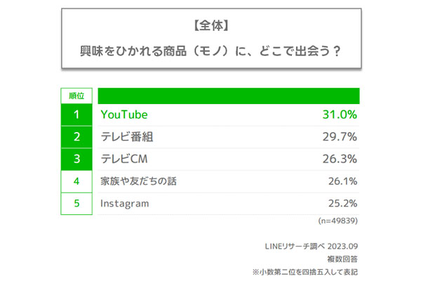 興味ひかれる商品に出会うのは「YouTube」が1位 -