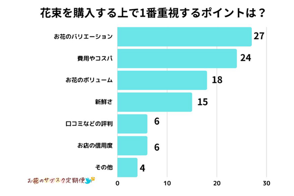 花束の購入で最も重視するポイント、1位は「お花のバリエ... -