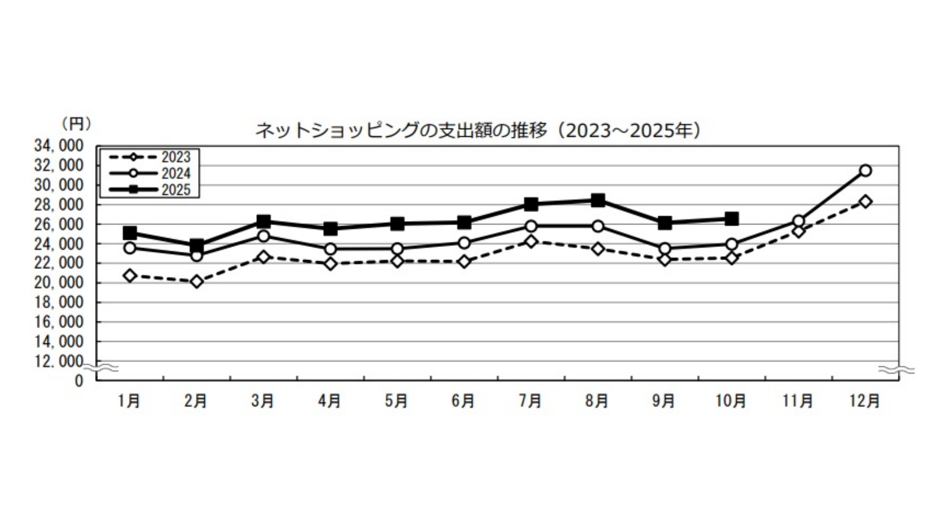 昨年11月、1世帯あたりの「ネットショッピング」支出額... -