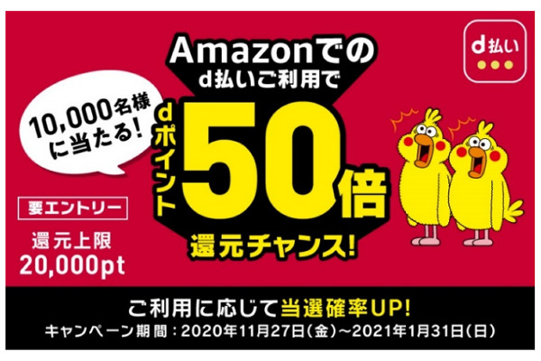 Amazon、d払い利用で50%還元!?抽選で1万人に -