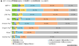QRコード決済利用率、1位楽天ペイ・2位PayPay -