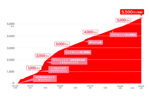 「PayPay」登録数が5500万人突破、スマホユーザ...