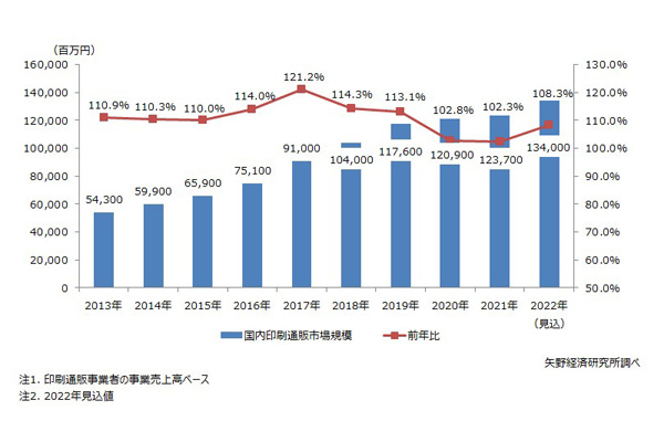 国内印刷通販市場、2.3%増の1237億円…DX浸透で... -