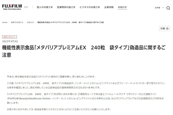 機能性表示食品『メタバリア』の偽造品、Amazonとメ... -