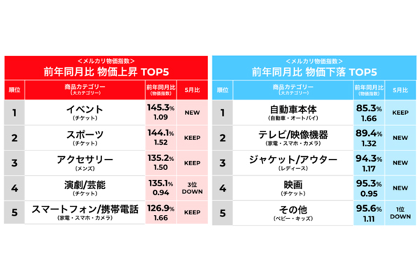 メルカリ物価・数量指数、6月はチケットなどイベント関連... -
