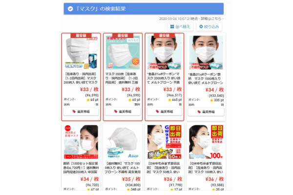マスク1枚の最安値をモール横断検索!「マスク通販最安値... -